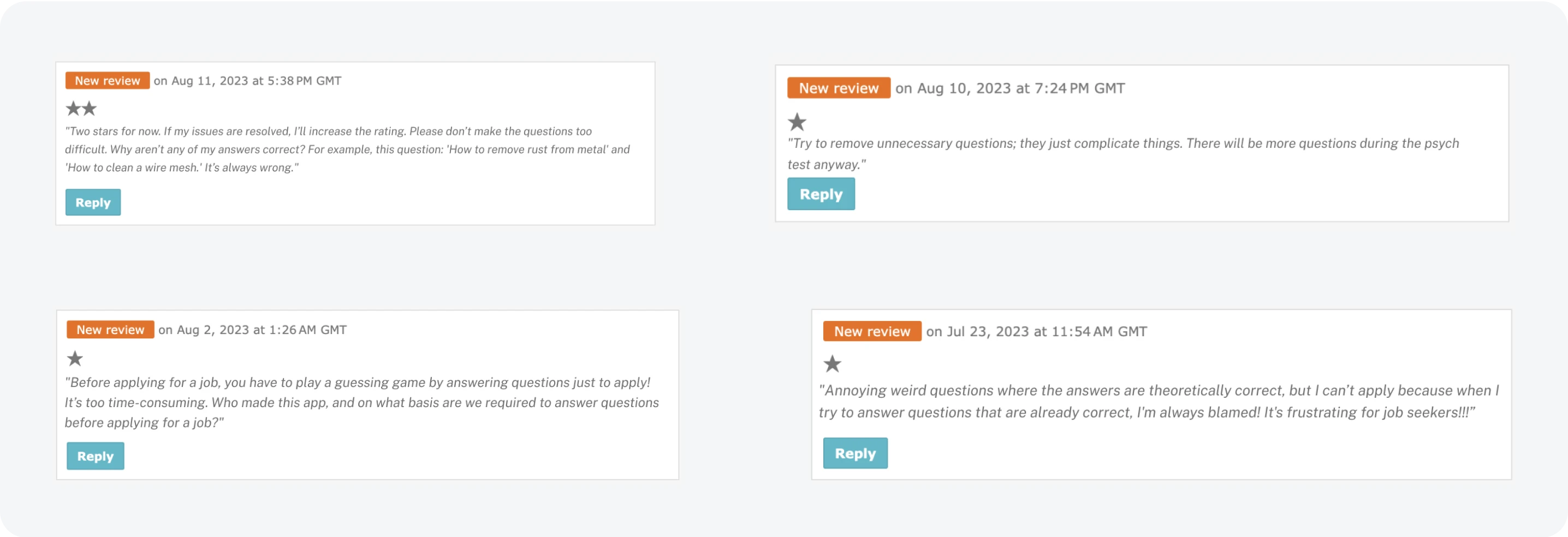 We started by investigating where irrelevant questions were coming from. The source was the Employer Dashboard—a web platform where employers manage job postings and applicants. This meant our research had to focus on the employer side rather than job seekers.