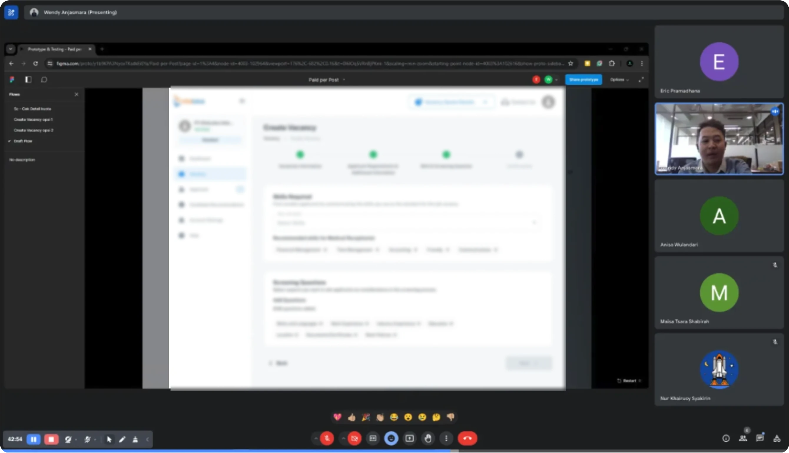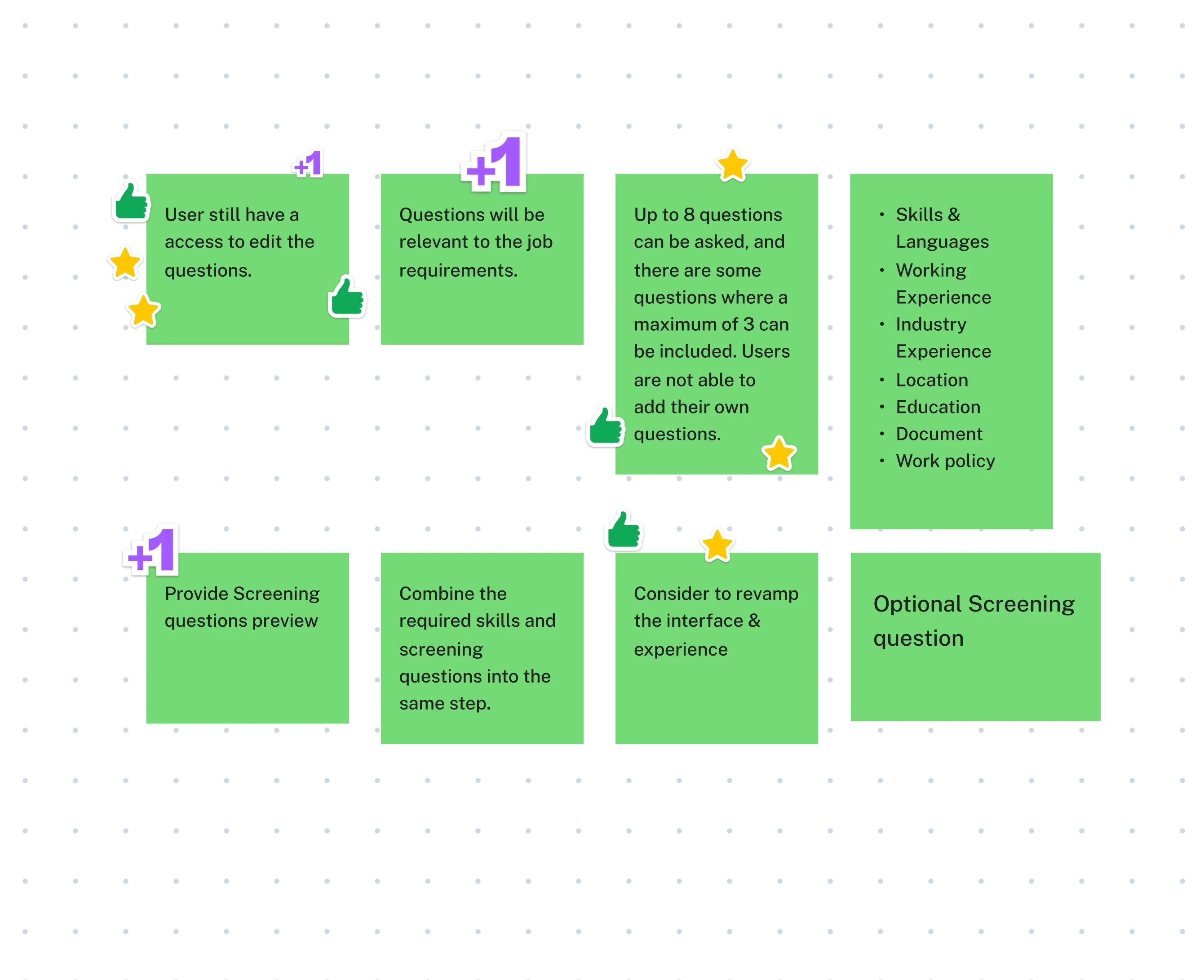 We conducted usability testing sessions with multiple participants, including Human Resources staff from our own company. The goal was to validate both the flow and the UI design of the screening questions feature.