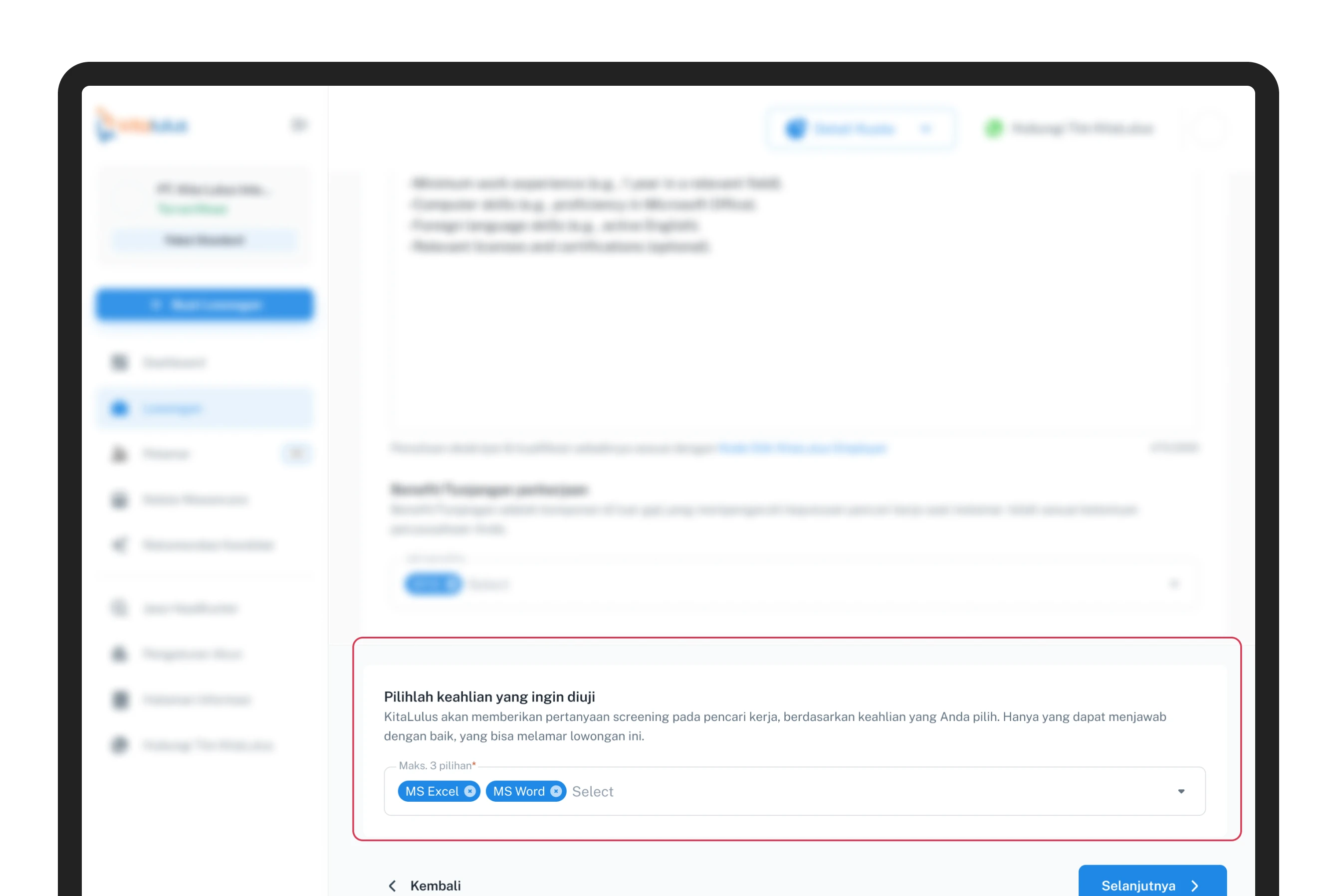 This design provides employers with clear instructions, skill suggestions, and the flexibility to choose up to 20 relevant skills. It helps ensure that selected skills align more accurately with the job role.